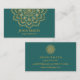 Cartão De Visita Instrutor Moderno Teal e Dourado Mandala Yoga