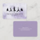 Cartões de visitas de instrutores Yoga com fundo de mármore roxo tranquilo, poses de ioga da silhueta, seu nome, cargo e informações de contato.
