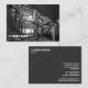 Um modelo de cartão de negócios com uma imagem ou textura de fundo. Nome da empresa e tipo de negócio na frente com nome e outros dados de contato no verso.