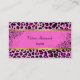 cartão de visita de na moda, feito em um padrão onça-pintado, rosa e preto, com uma banda rosa e dourada, na frente do meio. A parte de trás é feita a preto, com a impressão onça-pintada, do lado esquerdo revestida de ouro. O texto preto e rosa, na frente e atrás, está pronto para personalizar suas necessidades. Um belo cartão de destaque que traz uma impressionante primeira impressão.