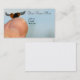 O joaninha prepara-se para o vôo do polegar humano, contra o contexto do céu azul. Cartão de visita perfeito para a paisagem, berçário, jardineiro. Personalize com seu próprio nome e endereço. Fotografia original por Cherie Haines.