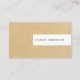 Cartões de visita personalizados com design moderno simples em fundo de textura de papel kraft marrom rústico. Escolha entre papéis padrão, assinatura ou premium.