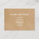 modelo de cartão de negócios personalizado moderno e simples para você personalizar. Um design de chic elegante que projeta uma imagem profissional confiante. Texto branco em uma imagem de fundo do papel Kraft.