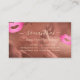 Na moda spray de vedação cartão de visita com lábios rosa rosa-rosa bonito, cor-de-rosa-rosa, textura de ouro rosa de cobre e letra elegante de caligrafia. Personalize o produto com seu nome e detalhes.