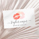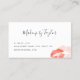 Este elegante cartão de visita de maquiagem apresenta lábios vermelhos, fundo branco e letra elegante de caligrafia.