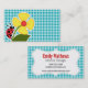 Cartão De Visita Ladybug e Flor no Gingham Verde Azul