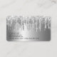 Este cartão de visita de lascas e sobrancelhas deslumbrantes apresenta textura metálica brilhante de gotejamento prateado sujo e uma elegante fonte de caligrafia.