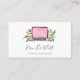 Belo design para assistentes virtuais apresenta uma ilustração de computador com laptop de aquarela flanqueada por buquês de flores cor-de-rosa pinceladas. Personalize a frente com duas linhas de texto no script manuscrito e na letra de serif clássica, e adicione suas iniciais ou monograma à tela do laptop rosa. Adicione as informações de contato do VA ao verso.