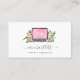 Belo design para assistentes virtuais apresenta uma ilustração de computador com laptop de aquarela flanqueada por buquês de flores cor-de-rosa pinceladas. Personalize a frente com duas linhas de texto no script manuscrito e na letra de serif clássica, e adicione suas iniciais ou monograma à tela do laptop rosa. Adicione as informações de contato do VA ao verso.