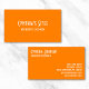 Cartão de visita cor de laranja arco-íris com letra branca.