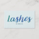 cartões de visitas bonito e modernos com um design legal, verde e azul de tipografia, que diz Lashes sobre um fundo verde da casa da moeda. Altere a cor de fundo e a cor do texto no verso para uma aparência personalizada. Projetado com cosmetólogos, técnicos de barra e maquiagem em mente.