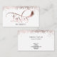 Esta moda e elegante cartão de visita com lascas de rosa-ouro desenhadas à mão com rosa-gold confetti é perfeita para artistas de maquiagem, negócio de extensão de eyelash, extensão de lash, blogueiros de moda, bar de lash, salão de beleza... Os detalhes da folha são simulados no trabalho de arte. Não será utilizada nenhuma folha de alumínio real no fazer deste produto.