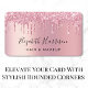Faça uma boa impressão com este cartão de visita de extensão chic lash apresentando pingos brilhantes cor-de-rosa faux e seu nome em um script de tendência contra um fundo de película falso rosa. Também pode ser personalizado para salões de beleza, salões de unhas, maquiadores, cabeleireiros e esteticistas.