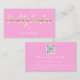 Cartão De Visita Lashes de qualidade rosa Dourada Script Código QR