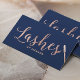 Lashes Makeup Artista Rosa Script Elegante Elegante Marinho Azul nº 2 Cartões de visitas.