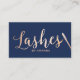 Lashes Makeup Artista Rosa Script Dourado Elegante Marinho Cartões de visitas Azuis.
