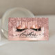 Cartão de visita de Lashes Dourados, modernos, chic, de moda. Design apresenta pingos de brilho sujo e conjunto de pestanas com folha de alumínio rosa dourada, fundo brilhante brilhante e script de tipografia. Personalize com seu nome na frente e entre em contato com os detalhes no verso.