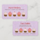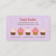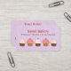 Estes cartões de visitas de panificação roxas de lavanda giro têm chocolate e cupcakes de baunilha com aspersão e cerejas em cima. Perfeito para cozinheiros de pastelaria, empresas modernas de cupcakes e bolos e padarias.