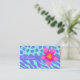 Crie um cartão de visita de na moda para uma impressão de excelente com essa sofisticada lavanda de saltos-redondos e turquesa, zebra azul e impressão de chita, projetada para o estilo. Um bar de lavanda fornece um ares na frente para seu nome comercial. Uma flor fuchsia grande fica à direita do seu nome. A parte traseira tem um grande emblema de lavanda para personalizar com as informações de contato da sua empresa. A pele de zebra estriada colorida e a design gráfica da chita ou da pele-leopardo é uma das tendências mais quentes da arte e da design, e é extremamente popular da moda à decoração doméstica. Isso é totalmente personalizável para personalizar a sua empresa ou para um cartão de chamada pessoal.
