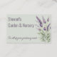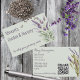 Cartão de visita duplo. Faça uma bela declaração com este cartão de visita. Decorado com lavanda de aquarela em tons verdes e roxos suaves em um fundo verde. A adição do código QR permite que os clientes acessem facilmente seu site para obter informações sobre produtos e armazenamentos.