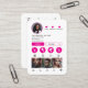 Um layout na moda e vibrante projetado para cabeleireiros, com um tema moderno de perfil social, ícones ousados cor-de-rosa e um código QR digitalizável para fácil acesso on-line. Inclui slots de fotos e todos os detalhes essenciais de contato.