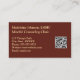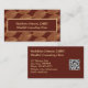 This mental health counselor, therapist, psychologist, or other professional healer business card features a beautiful repeat pattern of fall leaves in a lovely bronze on a bround background on the front. Your name is printed in a beautiful font in gold, bordered by the same gold, with your contact details printed in gold on brown on the back. There's also a QR code placeholder for you to customize with your own website. Make sure to update it, or else delete the QR code if you don't want one.