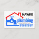 Cover features a home building frame that is leaking water from the faucet. Card details are over on the right with your prestigious name at the top followed by the business name "plumbing" in blue and a slogan caption option; Change the captions to these items to suit your own service needs. Overleaf, at the top is the blue faucet logo you can use followed by your prestigious name and the contact details.