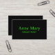 Impresso com texto verde néon brilhante em fundo preto de cor personalizada, isso é perfeito para aqueles que estão procurando por cartões de visitas legal. Sinta-se livre para mudar os textos e adicionar seus próprios detalhes em ambos os lados do cartão e personalize como quiser!