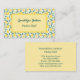 Esta adorável cartão de visita amarelo-limão é uma forma excelente de promover o seu cozinheiro de pastelaria, cozinhar, compota caseira e geleias, ou outras profissões relacionadas com cozinhar. Este cartão, com uma adorável fruta de limão, árvore e padrão de licença, também pode ser personalizado para outras profissões, como consultor de beleza ou moda, butiques de presentes, designer de interiores, poções corporais caseiras e muito mais. Basta digitar o texto existente para inserir seu nome, profissão e outros detalhes de contato.