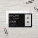 modelo de cartões de visitas online de serviço eletrônico licenciado moderno em um layout simples com imagem de uma tomada duplex e cobrir em segundo plano.