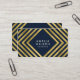 Este cartão de visita à moda elegante caracteriza um design geométrico de linhas quadradas no ouro do falso contra um fundo azul. É ideal para várias profissões como planejadores do casamento, coordenadores, organizadores, consultantes, estilistas do cabelo e da composição, desenhistas da jóia, Bloggers, designer de interiores, etc.; qualquer um que quer pouca elegância para seu cartão de visita.