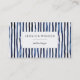 Estes cartões de visitas são modernos, à moda e encantadores. Caracterizam listras azuis bonitas da aguarela como um fundo. Um quadro branco à moda senta-se sobre o fundo. Isto é o lugar onde sua informação se senta. O texto na parte dianteira do cartão é imprimido no preto no quadro. Embora este cartão indique que é para da "um blogger forma", você pode mudar o texto para serir sua própria profissão. Todo o texto é inteiramente customizável. A parte traseira do cartão caracteriza um fundo azul escuro contínuo, e o texto é imprimido no branco. Use características da personalização de Zazzle para mudar o texto. Você pode mesmo mudar as pias batismais se você quer ao clique "o personaliza! "botão. Estes cartões de visitas funcionarão para incluir diferente de muitas profissões: floristas, estilistas, planejadores wedding, designer de interiores, lojas do boutique, e mais. A medida de cada cartão é 3,5" x 2,0", e você receberá 100 cartões por o bloco. Os cartões de visitas de Zazzle são qualidade superior do entalhe, assim que eu sei que você estará satisfeito com sua compra! Por favor mensagem mim através de Zazzle se você tem algum pergunta ou interesse em relação ao design. Também, sinta livre compartilhar deste produto com os todos seus amigos em meios de comunicação sociais!