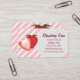 Estes cartões de visitas bonitos da morango caracterizam morangos vermelhas maduras deliciosas em um fundo listrado cor-de-rosa e branco vibrante! Estes cartões de visitas são certos deixar uma impressão durável e são perfeitos para uma fazenda da baga, uma padaria, um padeiro, ou qualquer um que ama morangos! Todos os campos do texto são inteiramente customizáveis! As imagens fornecidas pela sucata e os tubos de Zaza, a Dana Conditt, e as sucatas e os gráficos de Karen de digitalscrapdesigns.com e são usadas com permissão.