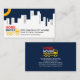 Um céu azul escuro envolve uma silhueta branca de blocos da cidade com um sol amarelo no canto superior. Na base, você tem o logotipo do caminhão do "home mover" que pode usar com o nome da empresa, os detalhes de contato e uma opção de slogan ao seu lado. ; Você pode mudar os comentários de legenda para o slogan para adequar-se às suas próprias necessidades publicitárias. No verso, em um cobrir azul escuro, o logotipo do "home mover" está no topo, seguido do seu nome prestigioso, dos detalhes de contato e de uma opção de slogan para divulgar seus serviços. Um design de excelente para os motoristas domésticos a serem usados.