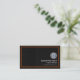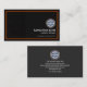 Um design criativo crocante encapsulado por um quadro castanho retangular. Os detalhes estão no canto inferior direito com o logotipo opcional na parte superior seguido do seu nome, cargo e URL comercial.