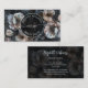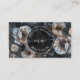 Este cartão de visita bonito apresenta flores brancas sobre um fundo escuro. A frente exibe um círculo de logotipo com o nome e a profissão. Perfeito para profissões como: terapeuta por massagem - treinador de salvamento - treinador de bem-estar - Landscaping - Professor de meditação - Especialista em estética ou em skincare - instrutor de ioga - Lista de cabelos negros - Boutique-Undertaker