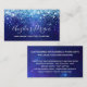 Design moderna de vidro feminino para sua loja online. Brilhante azul-cinza do oceano contra uma foto celestial do centro galático aqua, azul, magenta e azul escuro. Personalize a caligrafia elegante moderna ou a cor da fonte, o tamanho e o estilo de todos os bonés ou a cor de fundo preto sólido no verso. Crie seus próprios cartões de visitas voltados para vendedores online de artes e artesanatos, decoração doméstica, artigos de papelaria e outros produtos caseiros. Todos os elementos brilhantes e brilhantes neste design de promoção de pequenas empresas modernas são gráficos digitais.