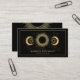 Um cartão de visita de cicatrização holística eetérea celeste que apresenta uma mandala solar de ouro moderna com raios solares, e fases da lua, com uma assinatura bonito e moderna.