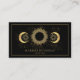 Cartão de visita de instrutor eéreo celeste que apresenta uma mandala solar dourada moderna com raios solares, e fases da lua, com uma assinatura bonito e moderna. Faux gold foil efeito.