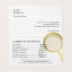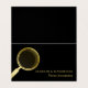 Cartão de visita dobrado no preto com detalhes do ouro do falso para um investigador privado ou uma empresa do PI. No cobrir, uma lupa dourada, seu nome da empresa, e serviços e/ou tagline. Dentro de você pode adicionar o nome, a informações de contacto, e a outra informação, tal como uma tabela de preços ou uma amostra de serviços.