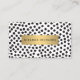 Design de cartão de visita de chic elegante com um padrão de pontos pretos pintados à mão com uma placa metálica falsa de ouro para seu nome ou nome comercial para uma estética luxuosa e tendência. Entre em contato com o designer se precisar de ajuda com nomes maiores ou layouts alternativos. Projetada pela 1201AM, uma agência de design de boutique especializada em design de logotipos e momentos de marca para empresas de na moda. Para pedidos ou perguntas de design, contacte-nos em www.1201am.com. © 1201AM CREATIVE