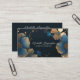 Cartão De Visita Luxe Elegância Dourada e Design Floral Azul