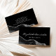 Esta elegante cartão de visita apresenta uma design de agata de cor-de-água preta, aparada com brilho cinza prateado brilhante sobre fundo preto. Personalize-o com seu nome em um script branco no estilo de escrita manual e informações comerciais em fontes brancas sans serif. A imagem preta é repetida no reverso.