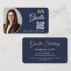 Make a strong, polished impression with this navy blue and gold insurance agent business card featuring a photo and QR code. Designed for insurance agents, brokers, advisors, and financial services professionals, this clean, modern layout builds trust with a rich navy background paired with classic gold accents. The integrated photo space helps clients recognize you instantly, while the QR code offers quick access to your website, quote request form, appointment scheduler, or digital vCard. Clear, professional typography ensures your contact details stand out and are easy to read. Fully customizable and print-ready—perfect for networking, consultations, conferences, and everyday client relations.