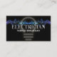 Um relâmpago elétrico zapeia pelo espaço e liga uma lâmpada luminosa. Em frente à lâmpada está uma sinalização "eletricista" metálica. Logo abaixo, você tem seu nome prestigioso. No verso, o relâmpago elétrico corta o logotipo da lâmpada dourada que você pode usar. O filamento da lâmpada é feito de um par de panelas para reparo. Seguem-se o seu nome prestigiado, os contatos e uma opção de slogan para divulgar seus serviços. Um na moda para temas elétricos.