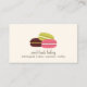 O design de cartão de visita personalizado apresenta uma ilustração fofa de 3 biscoitos macarônicos franceses.