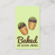 Simplesmente personalize com suas informações para uma aparência de um tipo! Os cartões de visitas apresentam uma ilustração original de um par de louças francesas picadas de chocolate, revestidas de pistácios verdes. Excelente para uma padaria ou um negócio de biscoitos.