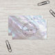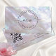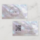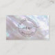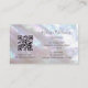 Este elegante cartão de visita de luxo apresenta uma iridescente mãe-de-pera-mãe-de-pera e seu monograma em uma elegante escrita à mão. O monograma, junto com um círculo e seu nome e profissão em fonte sans serif, estão criando um logotipo. No verso está um código qr digitalizável e um modelo personalizado para nome, endereço e sociais. Este cartão de visita de vidro profissional é perfeito para salão, maquiagem, joias e muito mais.