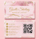 Elegante cor-de-rosa-pincel e cartão de visita de mármore de ouro desenhado para maquiadores e profissionais de beleza. Possui um código QR moderno para compartilhamento instantâneo de contatos, fonte de nome de script de na moda e um layout polido com ícones sociais. Uma design feminina e luxuosa perfeita para maquiadores de noivas, estéticos, técnicos de barra, estilistas de cabelo, técnicos de unhas e salões de beleza que buscam elevar suas marcas.