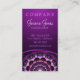 Cartão de visita bonito com uma mandala roxa impressionante da flor como a parte center. Há uma abundância do espaço para sua informação do negócio na parte dianteira e na parte traseira deste cartão. O clique personaliza para mais opções como escolhas da cor da pia batismal, adicionando mais texto etc.